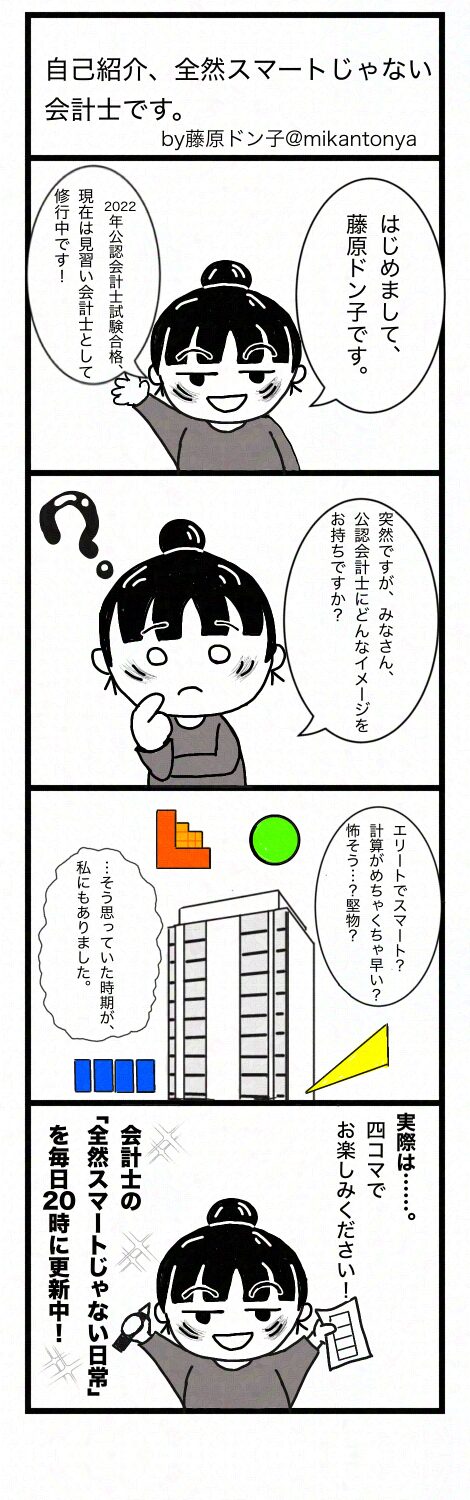 2022年に公認会計士試験合格。見習い会計士の藤原ドン子と申します。クスッと笑える会計士の日常を覗いてみませんか。